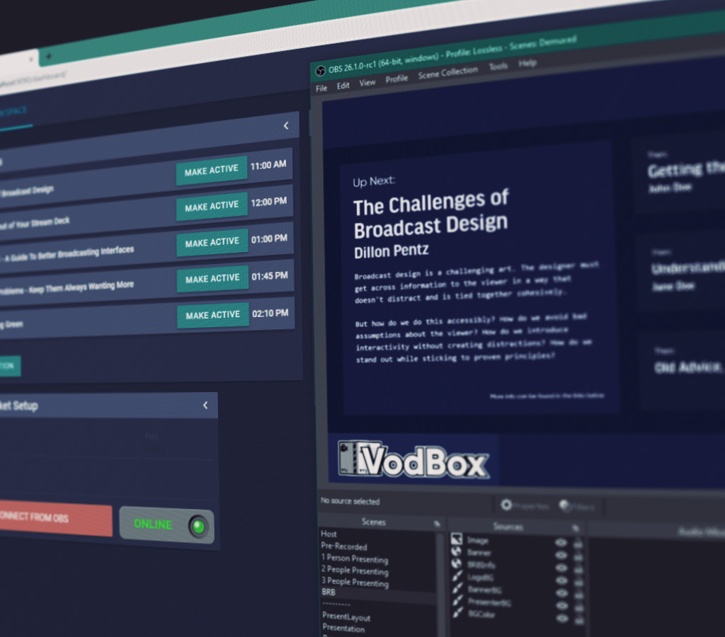VodBox has designed and built tools for political and non-profit fundraisers, high-profile e-sports broadcasts, and individual broadcasters alike, running entirely on open source software and frameworks.